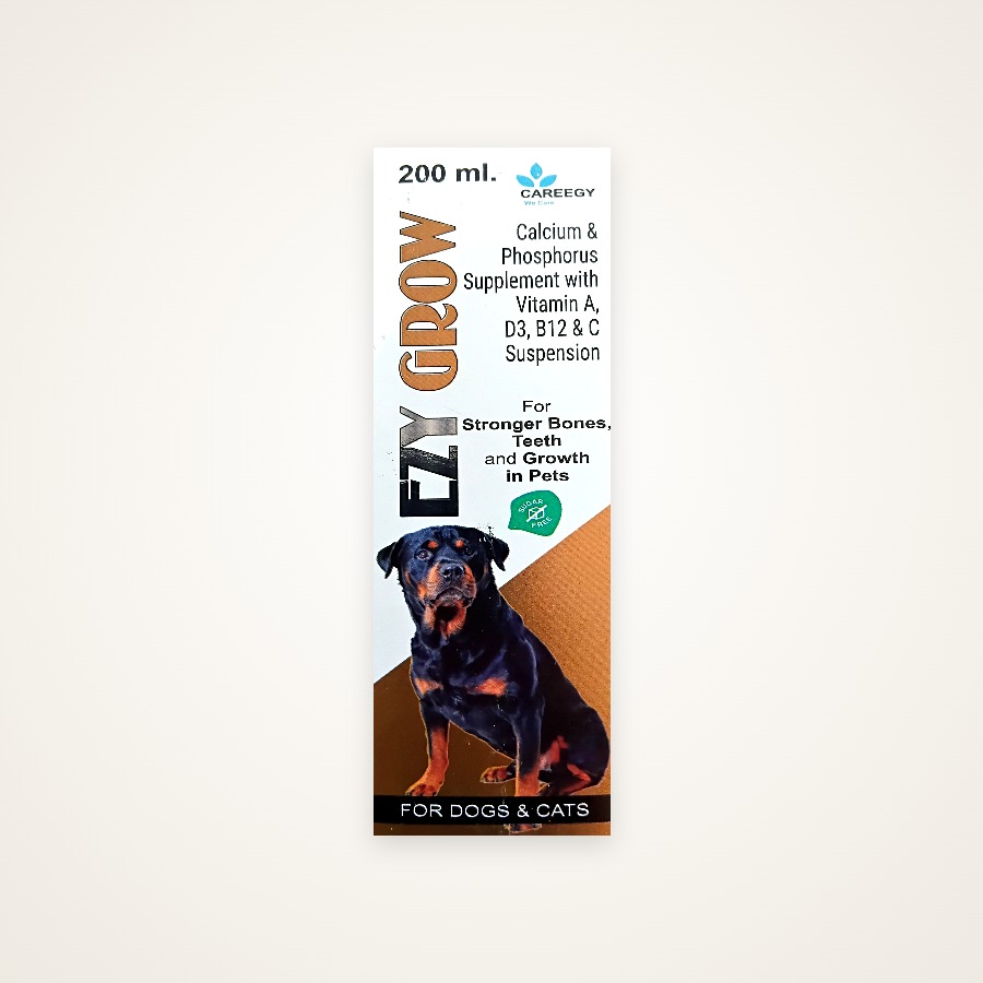 Calcium, Phosphorus, and multivitamin oral suspension for dogs and cats. Supports bone development, teeth strength, and growth in puppies and kittens. Contains Vitamins A, D3, and B12 for skeletal and immune health.